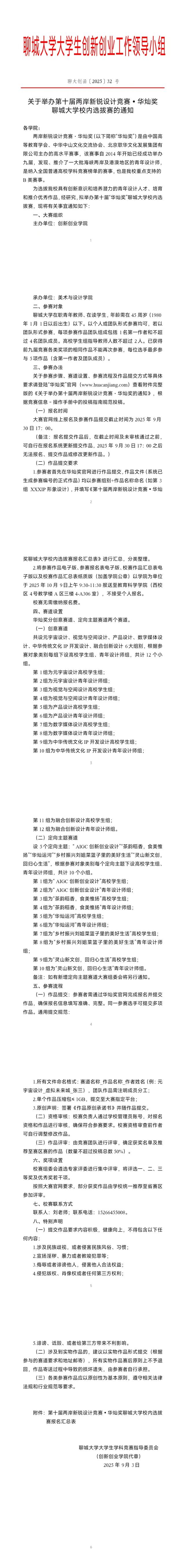 关于举办第十届两岸新锐设计竞赛▪华灿奖聊城大学校内选拔赛的通知