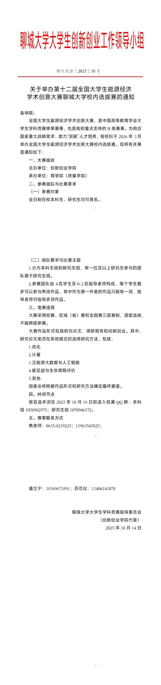 » 关于举办第十二届全国大学生能源经济学术创意大赛聊城大学校内选拔赛的通知